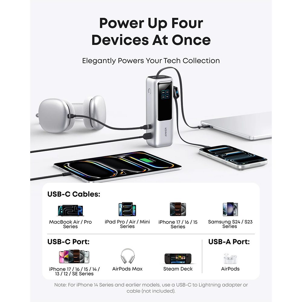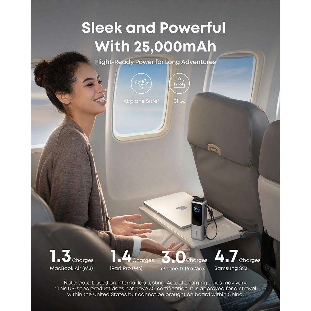 Anker Laptop Power Bank (25K, 165W, Built-In and Retractable Cables)