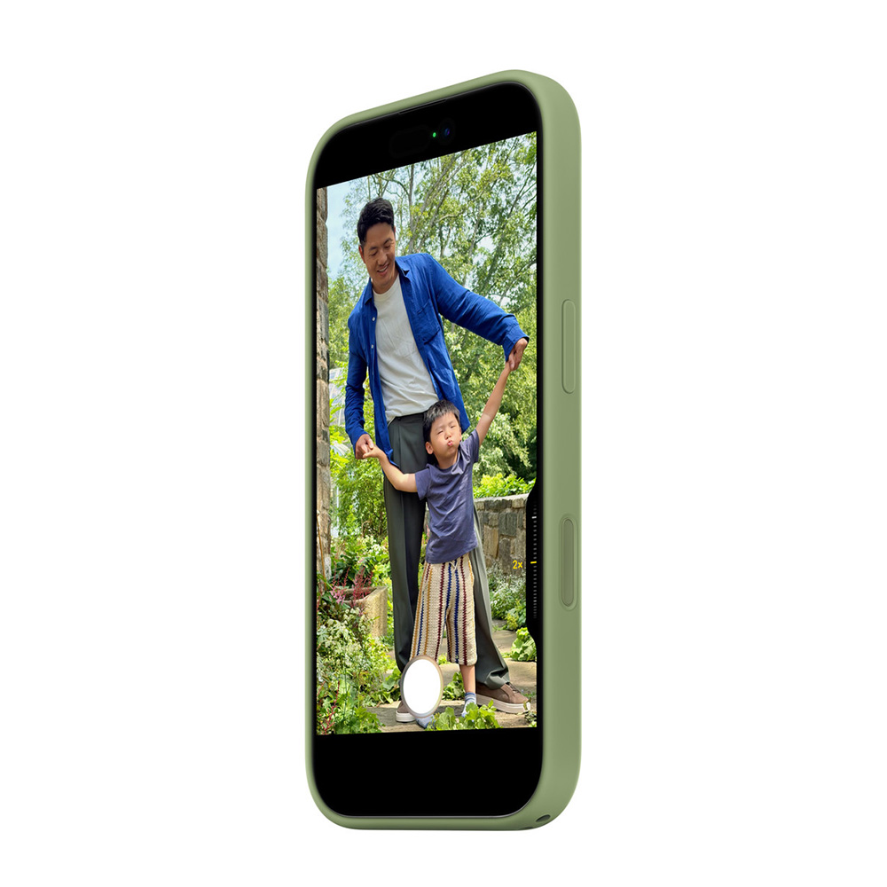 This case works seamlessly with Camera Control. It features a sapphire crystal coupled to a conductive layer to communicate finger movements to Camera Control.