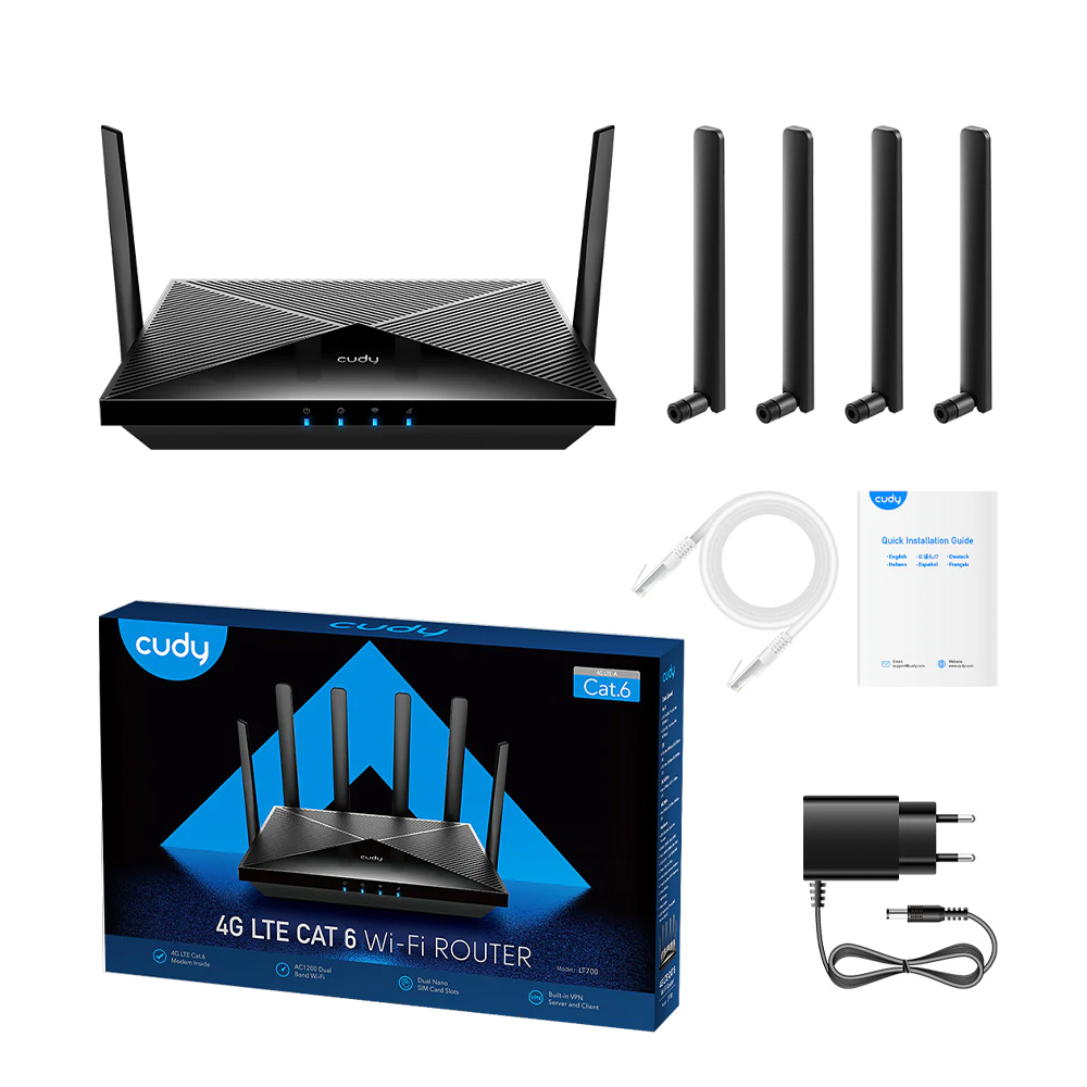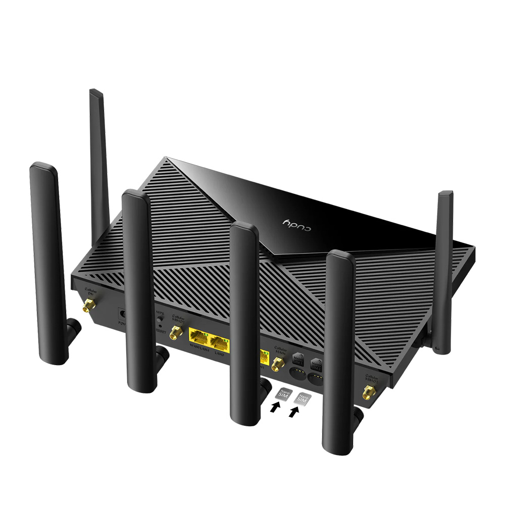 Dual SIM slots provide redundancy and keep the device always online. Both SIM slots can be filled, you can choose whether to use SIM card 1 or SIM card 2, or auto select by Cudy.