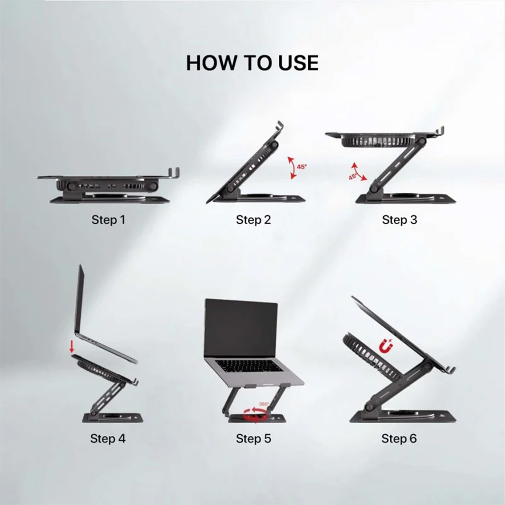 - Swivel your laptop Featuring a 360° rotatable axis on the base