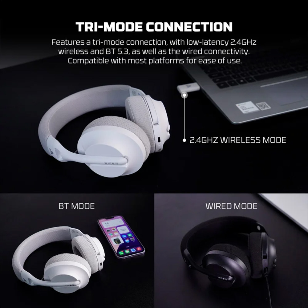 - 3 Modes Connection: Wired, BT, 2.4Ghz Wireless