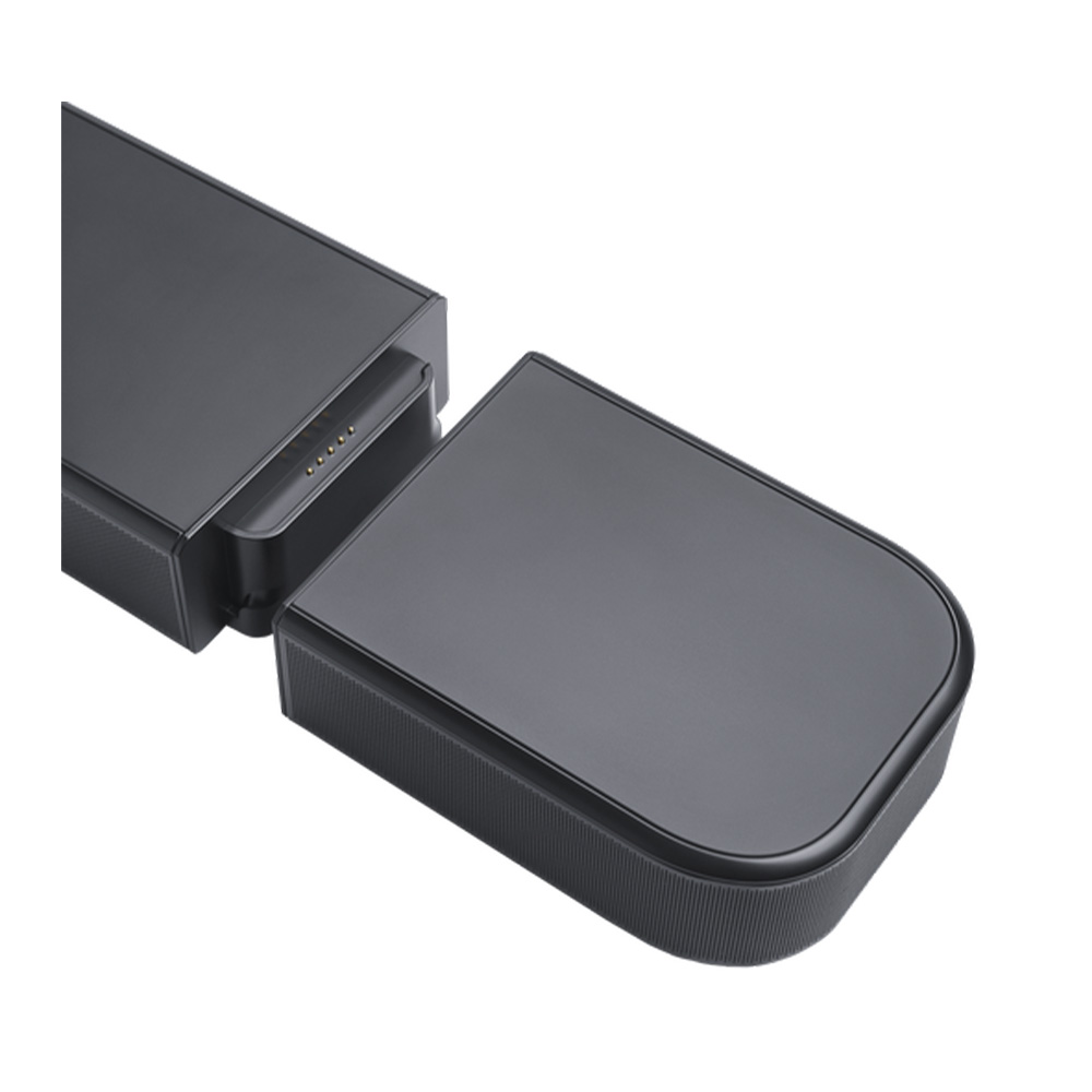 It’s never been easier to jump into true surround sound. No extra wires. No power connections. Just lift the detachable surround speakers off the soundbar—you can do it with just one hand—and place them behind you in the room for true surround sound. It’s that simple. Whether you’re binge-watching your new favorite show or hosting a movie night, the speakers’ long-lasting batteries mean you’ll enjoy immersive, cinematic surround sound for hours. When you’re done, simply place them back on the soundbar to charge overnight.