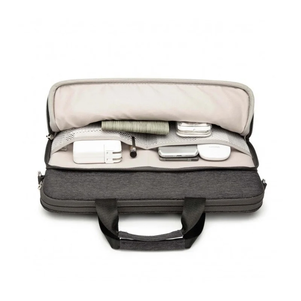 - Provides additional compartments or pockets for storing accessories such as chargers, cables, and mouse