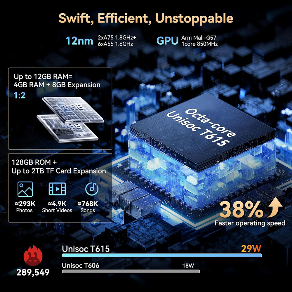 | Chipset | Unisoc T615 (12 nm) |