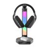 Porodo Gaming Headphone Stand Wireless Charging & USB-C Hub With 4 Modes RGB Lighting Stand is the perfect way to keep your devices charged and organized. This stand has a sleek design and offers multiple functionalities. On the front, there is a wireless charging pad that allows you to charge your devices, such as earbuds, without any cables. On the back, you’ll find two USB-A ports v2.0, which can be used for charging other gadgets and transferring data at speeds up to 480Mbps. Additionally, there is a USB-C port that comes with a 1.5 USB-A to Type-C cable for connecting the stand to your system. The top port of the stand is specifically designed for placing your headset, keeping it neat and within reach. Moreover, the stand features an RGB color that can be adjusted to different modes according to your preference, and there is a button on the back for easy control. Lastly, the bottom of the stand is equipped with a silicone pad to prevent it from slipping during use. all in all, with this wireless charging stand, you can conveniently charge your devices while keeping your headphones.
