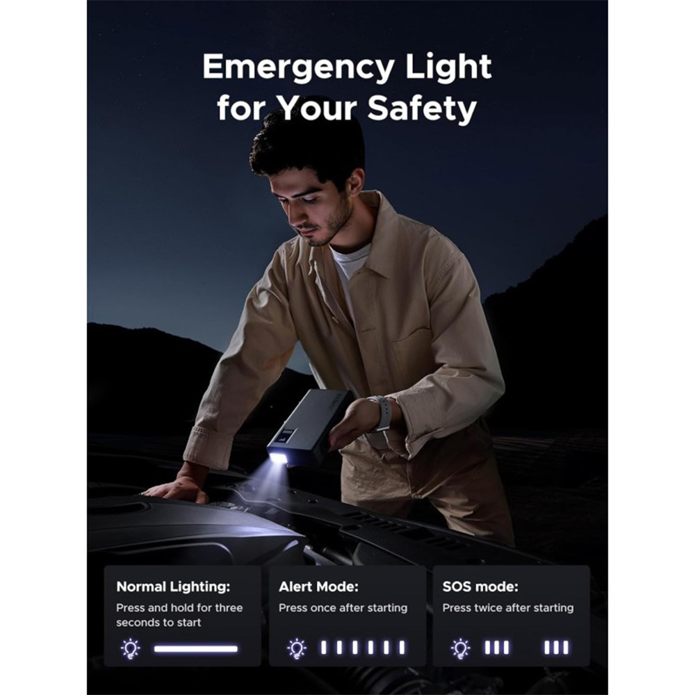 - 3-in-1 Functionality: Acts as a car battery jump starter, portable power bank, and LED emergency flashlight. Includes USB-A and USB-C ports for charging smartphones, tablets, and other devices.