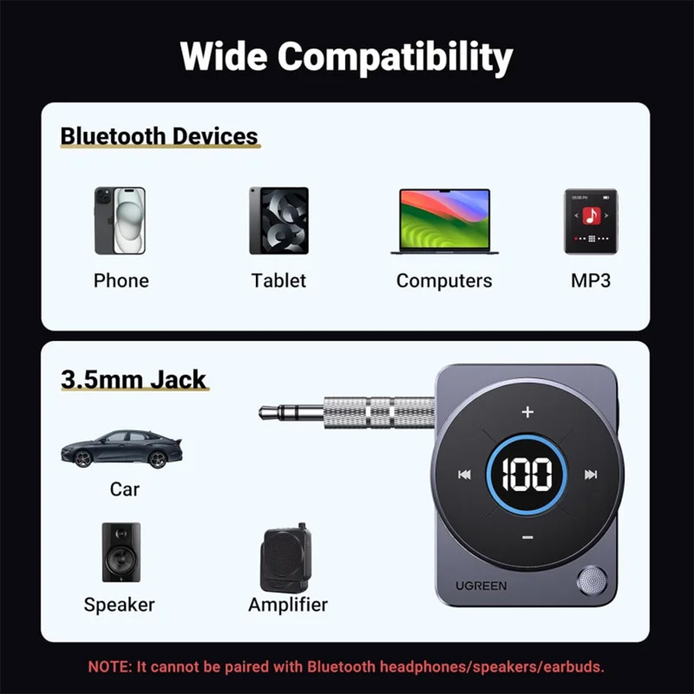UGREEN 5.4 Bluetooth Car Adapter Wireless AUX Receiver with Noise Cancellation