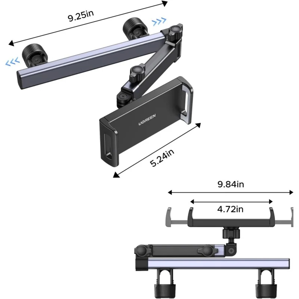 UGREEN Headrest Car Tablet Mount with Extendable Arm & 360° Rotation